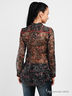 Оригинальная блузка, оформленная эффектным рисунком. Модель с длинными рукавами. Застегивается на пуговицы. Изделие дополнено накладным карманом.
