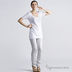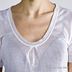 Очаровательная женская блуза с коротким рукавом. Застежка выполнена на пуговицы по спинке. Подол блузы посажен на резинку. Округлый вырез с защипом, образующим декоративную складку.