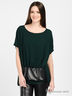 Оригинальный блузон из тонкого, плотного материла. Округлый вырез горловины. Короткие цельнокроеные рукава. Низ полочки присборен и декорирован вставкой под кожу. Потрясающий вариант на каждый день.