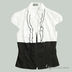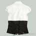 Хлопковая блуза для девочки. Отложной ворот, короткий рукав, застегивается на молнию спереди. Низ изделия дополнен контрастной вставкой, имитирующей корсет, со шнуровкой сзади. На полочке оригинальное жабо.