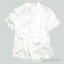Блуза для девочки из шелковистого материала. Отложной ворот, застегивается на пуговицы, короткий рукав на манжете, на полочке декоративный бант.