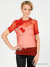 Детали: круглый вырез; застегивается на пуговицу сзади; короткий рукав-фонарик на резинке; декорирована рюшами и тканевыми цветами
