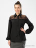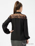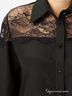 Великолепная шёлковая блуза с кружевной отделкой. Модель с длинными рукавами и отложным воротником. Модель прямого кроя дополнена спереди застежкой на пуговицы. Отличный вариант на каждый день.