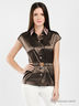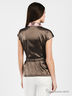 Изящная блуза из тонкого, шелковистого полушелкового атласа. Стояче-отложной ворот декорирован сеточкой с потрясающей вышивкой. Застежка на планку с пуговицами. Талия подчеркивается пояском на широкой резинке. Прекрасно будет сочетаться с классическими брюками.