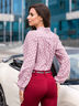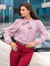 Стильная блузка с воротником стойка на завязках, переходящих в кокетливый бант. Застегивается спереди на пуговицы по всей длине. Трендовый горошек прекрасно впишется в любой образ.
