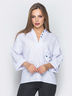 Блузка свободного кроя из хлопковой ткани с рукавами ¾. Полочка дополнена вышивкой. Пуговицы на полочке не функциональные. Застёжек не предусмотрено.