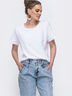 Однотонная блузка свободного кроя с декоративными пуговицами по линии плеч. Спинка слегка удлинена.