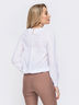 Блузка из креп-шифона с вырезом-капелькой на горловине и украшением. Длинные рукава с манжетами на пуговицах. Низ изделия стянут эластичной деталью. Застегивается на пуговицу на спинке.