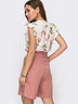 Принтованная блузка из нежного софта с рукавом-крылышко. Изделие прямого кроя с оборкой по треугольному вырезу. Застегивается на пуговицы.
