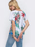Свободная блузка из струящегося креп-софта. Полочку украшает оригинальный печатный принт. По бокам небольшие разрезы.
