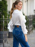 Однотонная блузка из струящегося шелка Армани с оборкой вдоль лифа и рукавов.