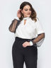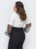 Блузка с воротником-стойка и V-образным вырезом на груди. Модель с длинным рукавом, дополненным мягким фатином.