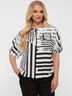 Лакончиная блузка в геометрический принт с нагрудным декоративным карманом из страз.