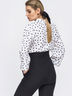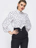 Блузка свободного кроя из струящегося софта. Изделие с воротником «стойка» и объёмным рукавом, присобранным на резинку. Застегивается на пуговицу сзади.