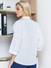 Блузка свободного кроя из хлопковой ткани с рукавами ¾. Полочка дополнена вышивкой. Пуговицы на полочке не функциональные. Застёжек не предусмотрено.