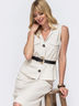 Льняная блузка без рукавов в стиле сафари. Изделие прямого кроя с накладными карманами на полочке и разрезами по бокам. Модель универсальна: её можно носить как самостоятельно, так и в сочетании с легким топом или футболкой. Ремень в комплект не входит.