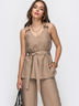 Стильная блузка прямого кроя из жатой льняной ткани. Широкие бретели дополнены пряжками. Пояс из основной ткани в комплекте.