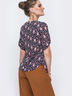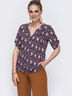 Блузка свободного кроя из принтованного софта с фигурным вырезом горловины и функциональной планкой с пуговицами на лифе. Длина рукава регулируется шлёвками.