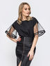 Блузка свободного кроя, застегивается на пуговицу по горловине. Рукав выполнен мягкой шифоновой сеткой.