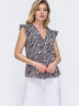 Лаконичная блузка прямого кроя с рукавом-крылышко в актуальный анималистичный принт зебры. Застегивается спереди на пуговицы.