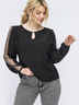Однотонная блузка с вырезом «капелька». Длинные рукава дополнены вставками из мягкой сетки в горошек.