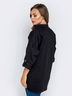 Практичная рубашка свободного кроя из хлопковой ткани с рукавами ¾. Рукав регулируется шлевкой. Полочка дополнена вышивкой с бульдогом. Пуговицы на полочке не функциональные. Застёжек не предусмотрено.