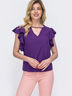 Блузка свободного кроя из софта с рукавом «крылышко» и оригинальным вырезом горловины. Застёгивается на пуговицу сзади.