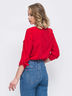 Блузка из софта с треугольным вырезом горловины и накладными карманами с клапанами на полочке. Длина рукава корректируется регуляторами.