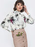 Блузка свободного кроя из легкой приятной к телу ткани с небольшими разрезами по бокам. Модель с присборкой по горловине, воротником стойкой, втачным рукавом на манжете, застегивающимся на пуговицы.