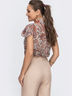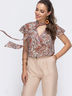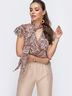Элегантная блузка из воздушного шифона в красивый цветочный принт. Модель прямого кроя с рукавом-крылышко. Треугольный вырез горловины, дополнен широкими завязками, преходящими в бант.