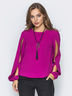 Блузка сочного цвета с интересным украшением в комплекте. Рукава длинные с вертикальным вырезом. Низ изделия выполнен на резинке. Застегивается на пуговицу сзади.