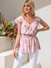Женственная блузка из хлопковой ткани в цветочный принт. Модель приталенного силуэта с баской и вафельной сборкой на поясе. Лиф декорирован кокетливыми завязками. Запах зафиксирован.