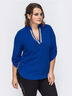 Однотонная блузка прямого кроя из струящегося софта. Глубокий V-образный вырез горловины декорирован стразами. Рукав ¾ зафиксирован шлёвкой.