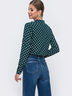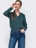 Легкая блузка прямого кроя в мелкий «горох». V-образный вырез горловины оформлен воротником стойка.