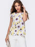 Легкая блузка с крупным цветочным принтом. Модель прямого кроя со спущенной линией плеча. Застегивается на пуговицу сзади.