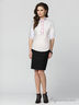 Красивая белая рубашка из вискозного штапеля, декорирована красной окантовкой, отстрочками и пуговицами. Небольшой отложной, округлый воротничок украшен цветными стразами. Рукава по длине 7/8 на клапане.