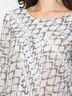 Блузка нежной расцветки, выполнена из деликатного шифона. Длинна рукава 3/4, нагрудный подрез декорирован стразами. По центру модель декорирована плиссировкой, интересно загибающей геометрический узор изделия.