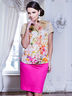 Классическая женская блузка, с цветочным принтом, дополнена отложным воротничком, который фиксируется на завязках.