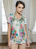 Блуза из вискозного шелка свободного покроя, V-образным вырезом горловины и с короткими рукавами.