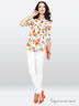 Классический, яркий батник-жатка, рукав дополнен клапаном. Модель с рукавами 3/4 и отложным воротником. Спереди - застежка на пуговицы.