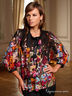 Эффектная блузка с рукавами 3/4 и округлым вырезом горловины. Изделие свободного покроя дополнено декоративным элементом - шарфиком. Привлекательный принт. Великолепный вариант на каждый день.