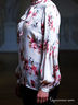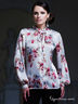 Эффектная блузка добавит в Ваш образ нотки пикантности и очарования. Модель приталенного покроя с застежкой на пуговицы. Воротник-стойка дополнен завязками. Длинные рукава. Отличный вариант для Вашего гардероба.