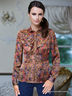 Нарядная блузка, с длинным рукавом, приталенного кроя. Модель выполнена по форме батника. Изделие с длинными рукавами и отложным воротником. Застежка на пуговицы спереди. Отличный вариант на каждый день.
