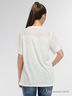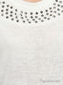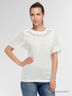 Симпатичная блузка с фигурным вырезом горловины, с короткими рукавами. Свободный крой. Вырез горловины декорирован фурнитурой.
