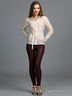 Блуза прилегающего силуэта, с отложным воротником на цельновыкроенной стойке. Застежка на пуговицы начинается от линии груди. В комплект входит узкий длинный поясок, который можно завязывать на талии. Модель выполнена из полупрозрачного хлопка с серебристым напылением.