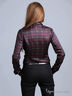 Блузка-рубашка полуприлегающего силуэта. Принт: клетка. Модель с длинными рукавами, отложным воротником и застежкой на пуговицы.