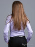 Блузка-рубашка прилегающего силуэта с кружевной отделкой на воротнике и галстук-шнурок контрасного черного цвета.