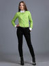 Классическая блузка-рубашка полуприлегающего силуэта с контрастной отделкой: белый воротник и белые манжеты. Модель с длинными рукавами, отложным воротником и застежкой на пуговицы.