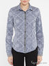 Женская рубашка F5, выполнена из жаккардового денима с этническим орнаментом. Модель дополнена хлопковой отделкой в тон основной ткани по манжетам и воротнику. Прекрасно сочетается с вещами из денима из коллекции F5.