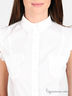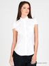 Детали: отложной воротник, застежка на пуговицы, короткий рукав присборен в пройме и декорирован хлястиком на пуговице, два декоративных кармашка